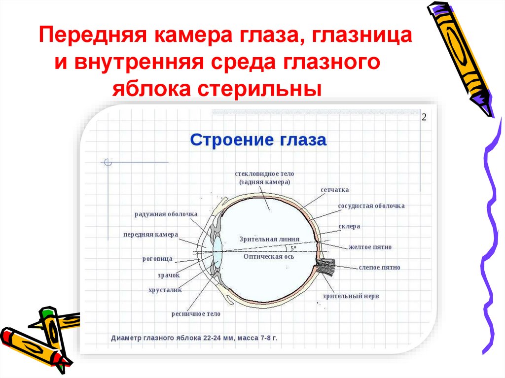 Передняя камера глаза, глазницаи внутренняя среда глазного