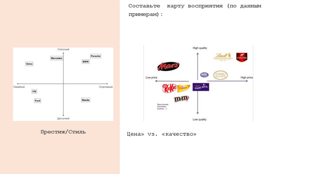 Самая важная часть: определить, какую уникальную позицию в сознаниицелевого сегмента занимает бренд по сравнению с конкурентами.