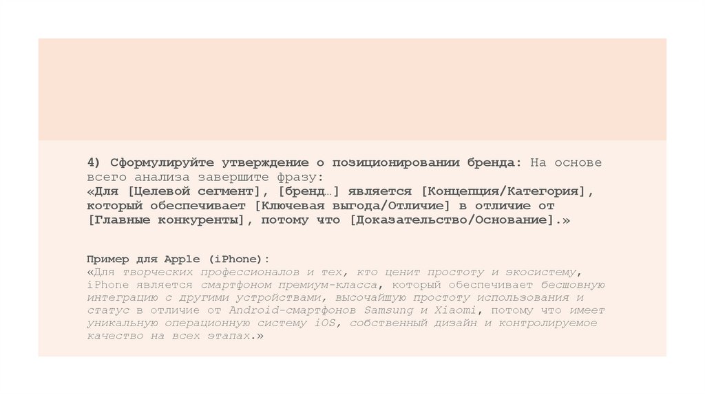 4) Сформулируйте утверждение о позиционировании бренда: На основевсего анализа завершите фразу: