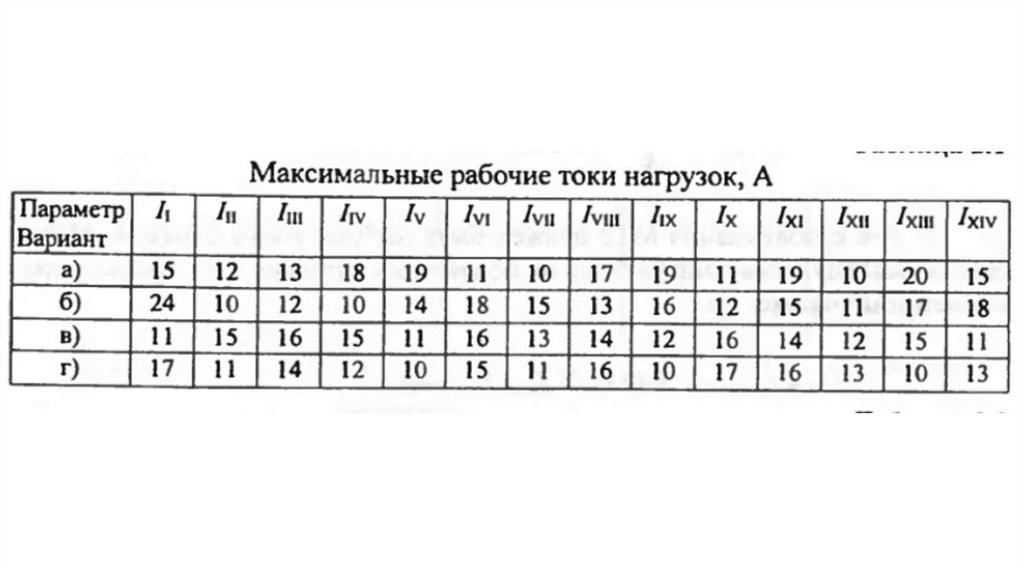 Ток Iраб.mах определяется как сумма максимальных рабочих токов
