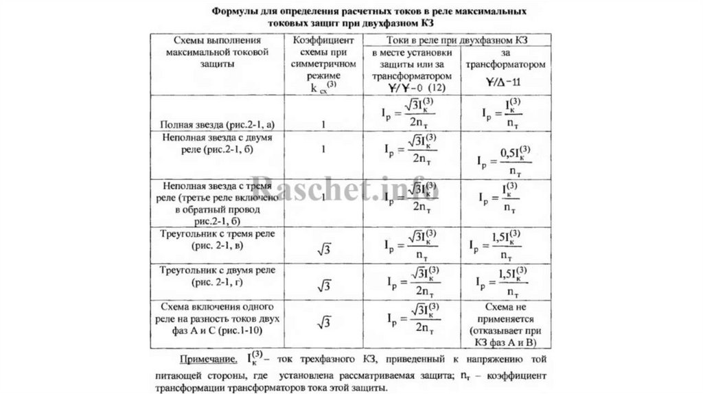иначе говоря, ток в реле защиты при разных видах КЗ превышает ток срабатывания Iс.р (уставку):минимальное значение тока в реле при наименее