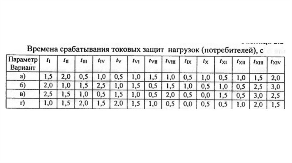 выдержки времени максимальных токовых защит потребителей I-XIV