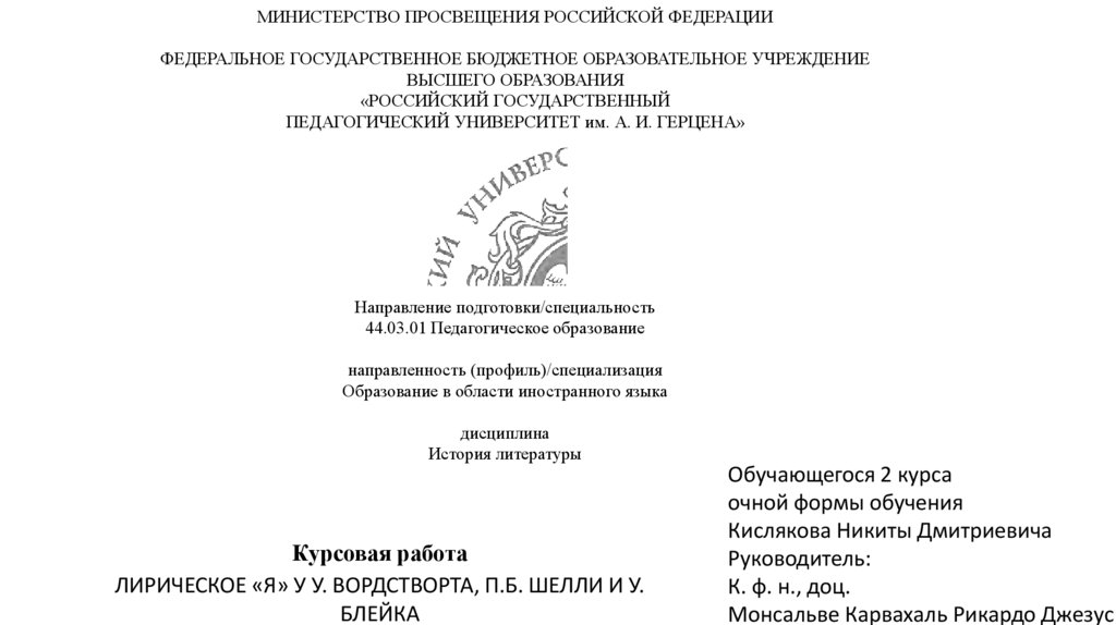 ПЕДАГОГИЧЕСКИЙ УНИВЕРСИТЕТ им. А. И. ГЕРЦЕНА»