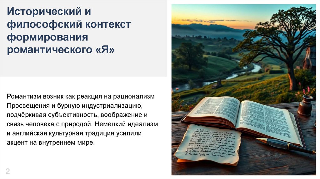 Романтическое «Я» раскрывает внутренний мир человека через природу, бунт и