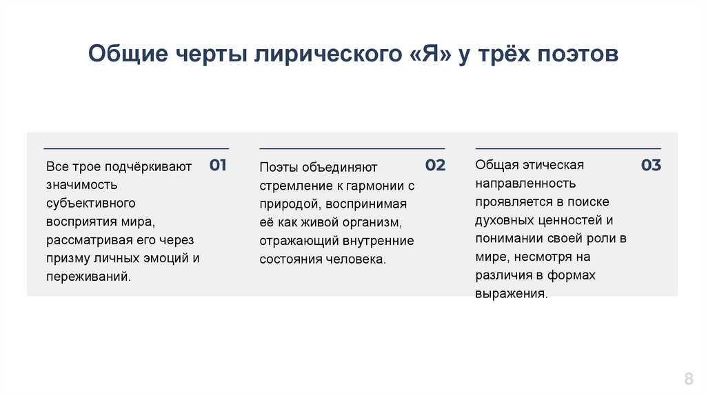 Общие черты лирического «Я» у трёх поэтовВсе трое подчёркивают