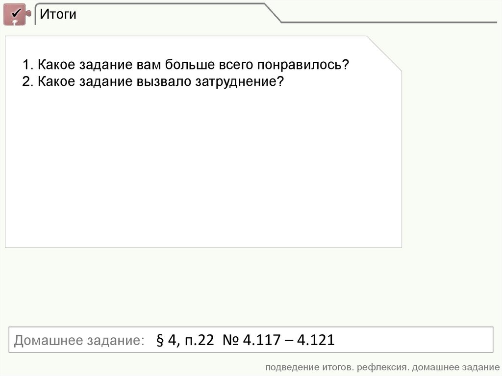 Домашнее задание: § 4, п.22 № 4.117 – 4.121