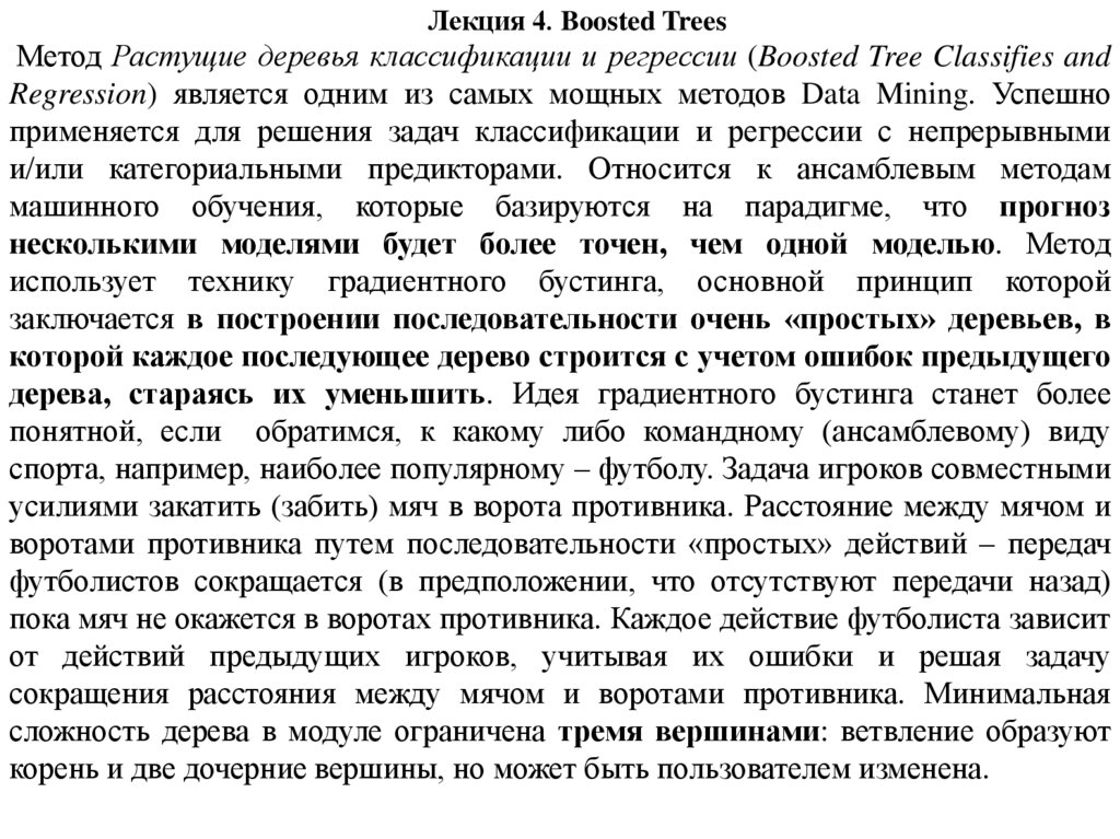 Метод Растущие деревья классификации и регрессии (Boosted Tree Classifies andRegression) является одним из самых мощных методов Data Mining. Успешно