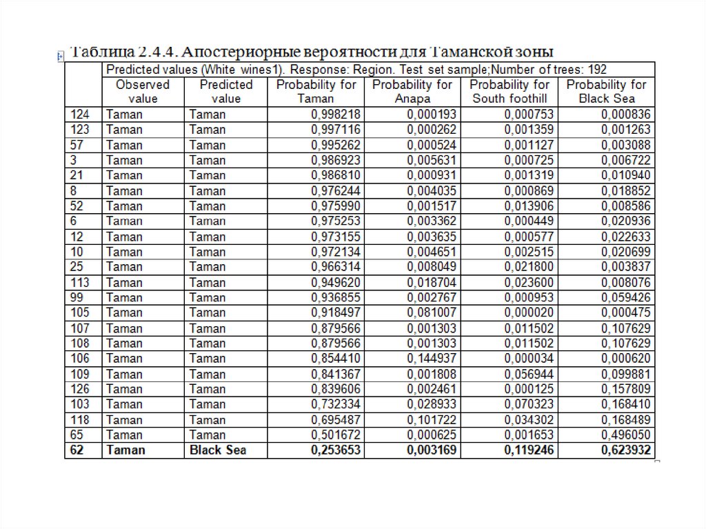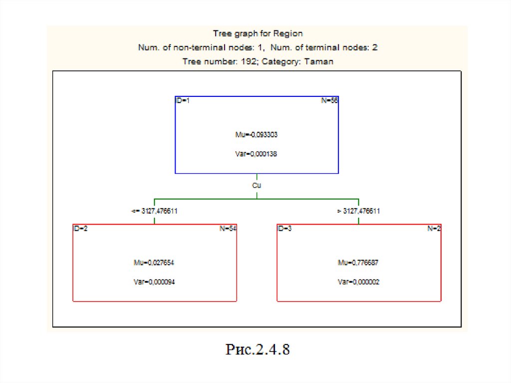 Таманской зоны. В вершинах деревьев отображены средние значения