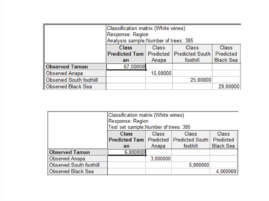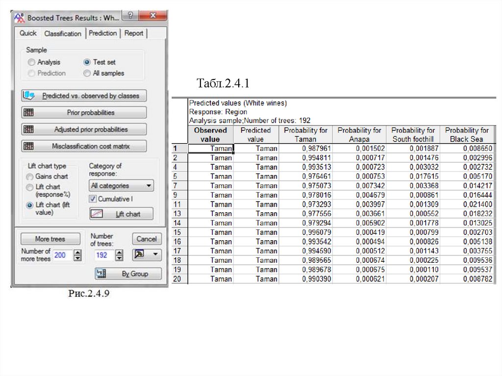 Для анализа предсказательной способности метода перейдем на вкладкуClassification (рис.2.4.9). После нажатия по кнопке Predicted… появится 4