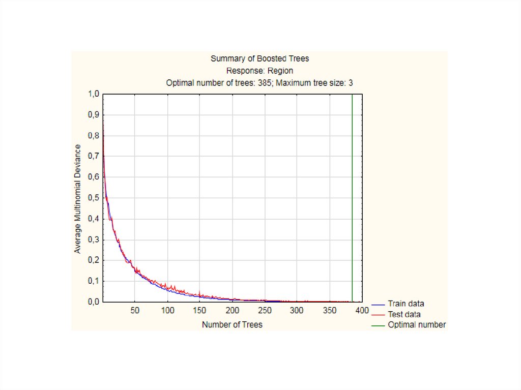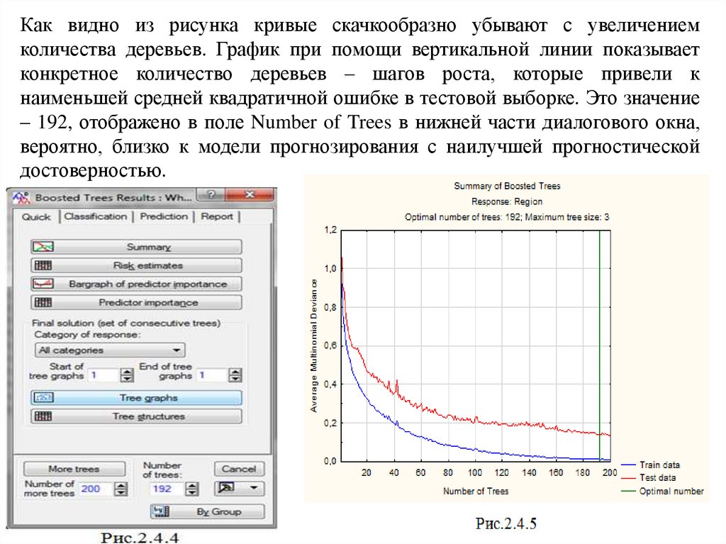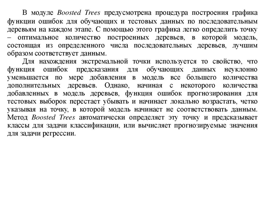 В модуле Boosted Trees предусмотрена процедура построения графикафункции ошибок для обучающих и тестовых данных по последовательным