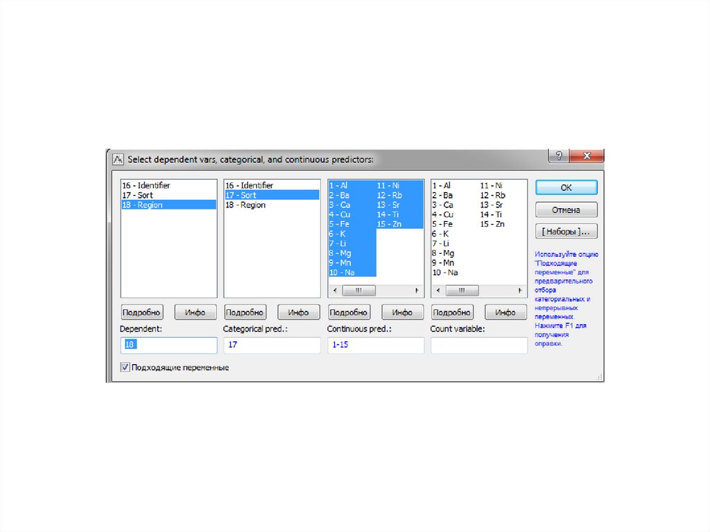 При помощи кнопки Variable обозначим переменные для анализа, также как это