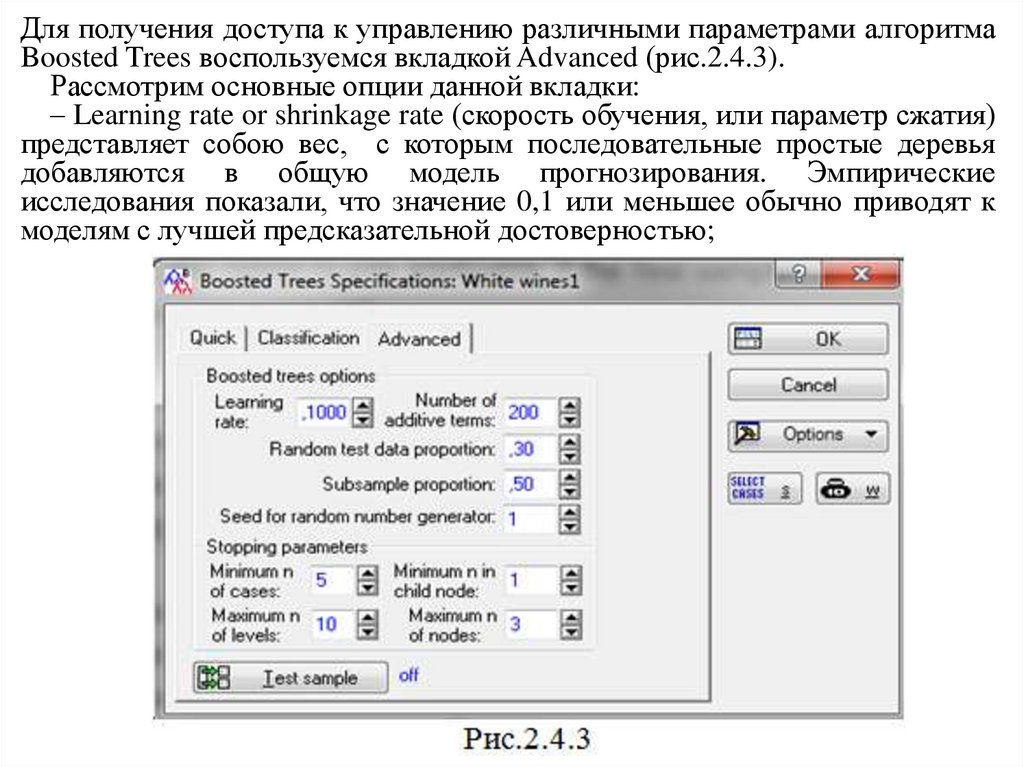 Для получения доступа к управлению различными параметрами алгоритмаBoosted Trees воспользуемся вкладкой Advanced (рис.2.4.3).