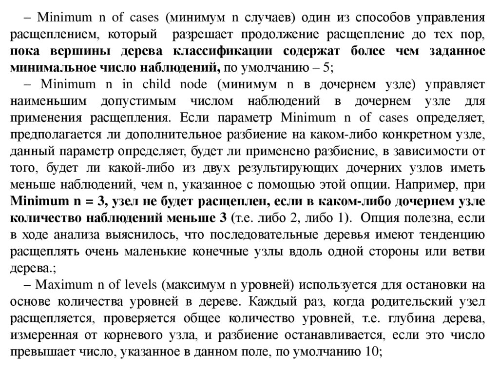 – Minimum n of cases (минимум n случаев) один из способов управлениярасщеплением, который разрешает продолжение расщепление до тех пор,