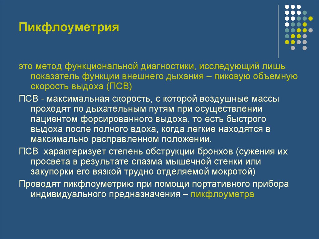 Пикфлоуметрияэто метод функциональной диагностики, исследующий лишь