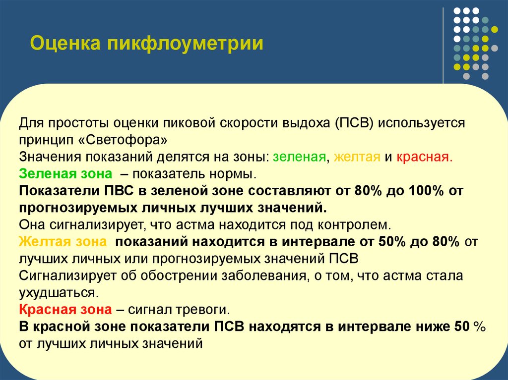 Оценка пикфлоуметрииДля простоты оценки пиковой скорости выдоха (ПСВ) используется