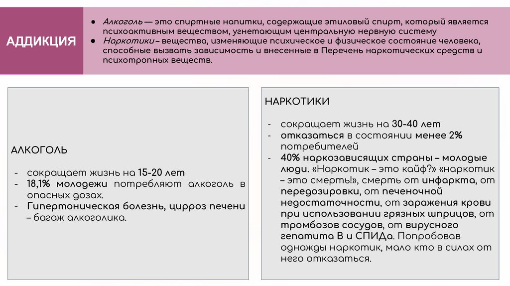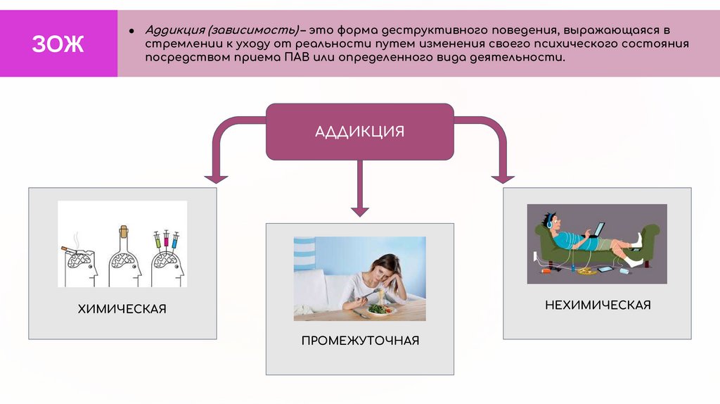 ЗОЖ● Аддикция (зависимость) – это форма деструктивного поведения, выражающаяся в