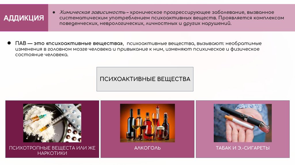 ● ПАВ — это «психоактивные вещества», психоактивные вещества, вызывают: необратимые
