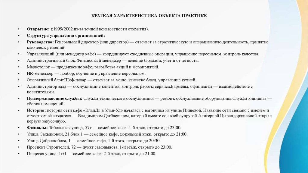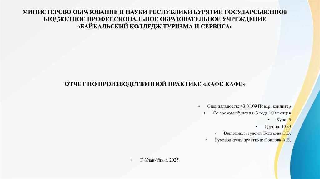 ОТЧЕТ ПО ПРОИЗВОДСТВЕННОЙ ПРАКТИКЕ «КАФЕ КАФЕ»
