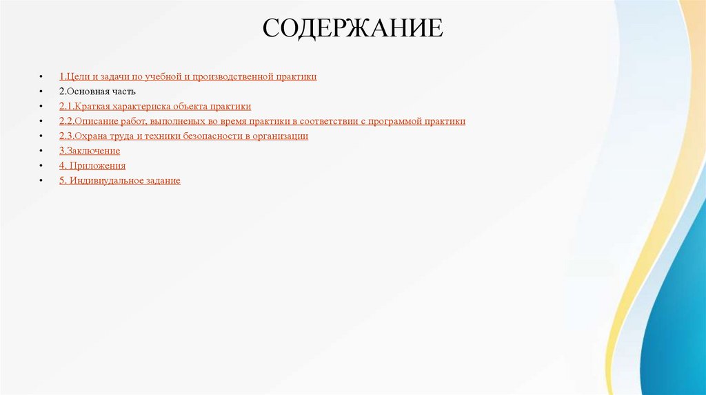 СОДЕРЖАНИЕ1.Цели и задачи по учебной и производственной практики