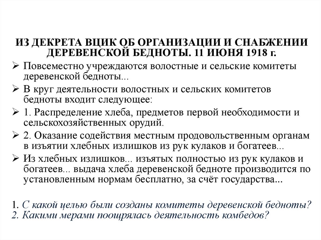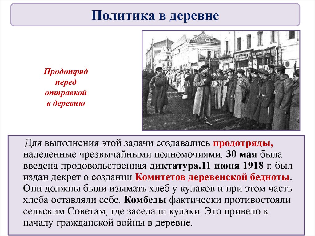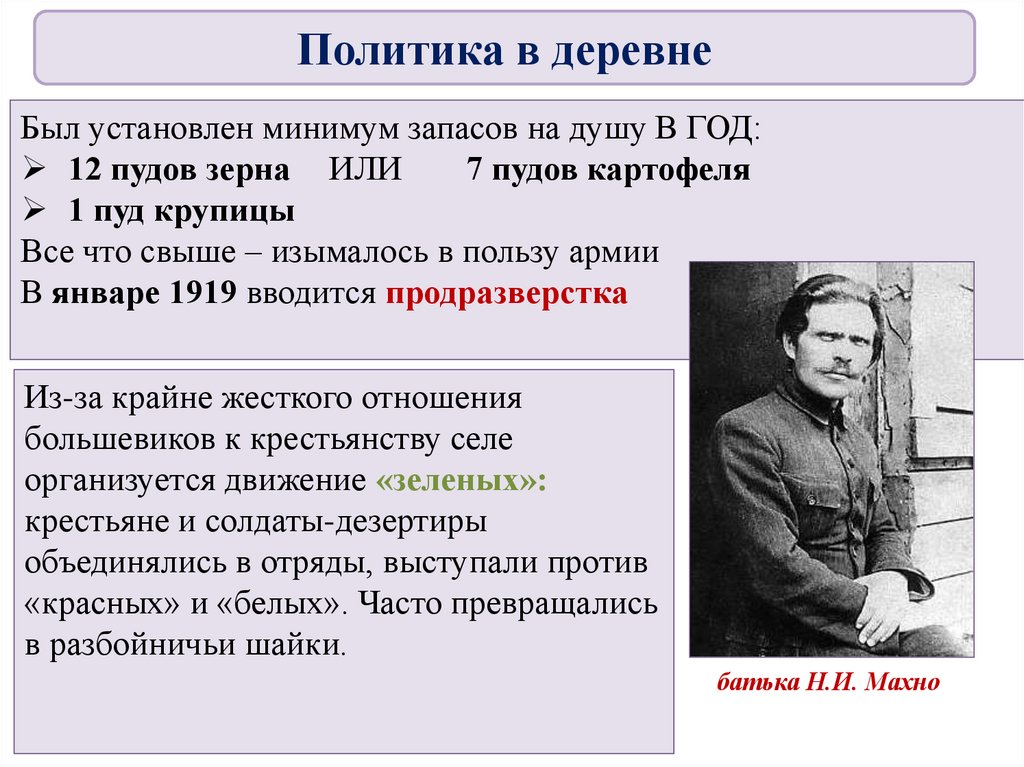 продовольственной диктатуры, комбедов. Были