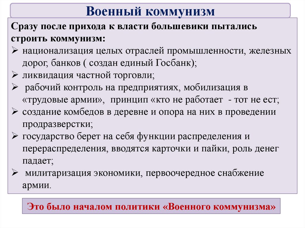 основывались на теоретических представлениях большевиков в переходный к социализму период нужно ликвидировать