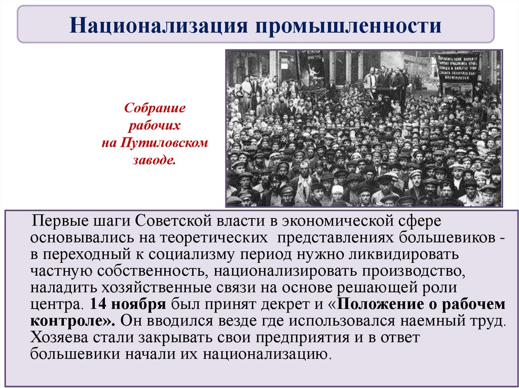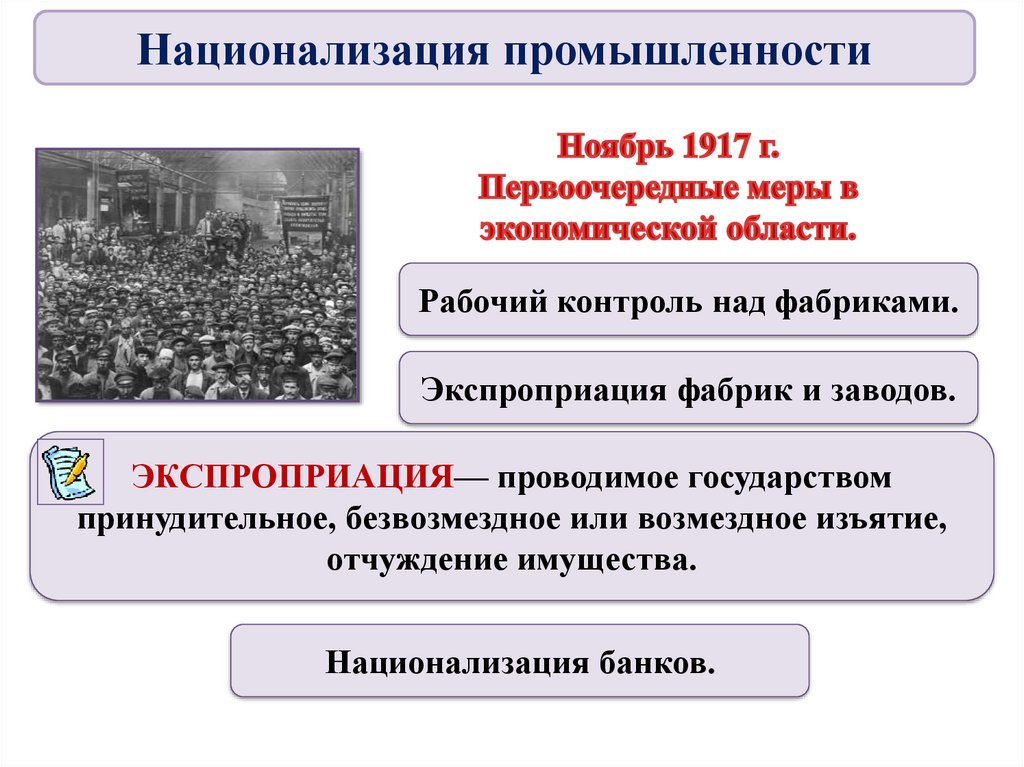 Национализация промышленностиРабочий контроль над фабриками.