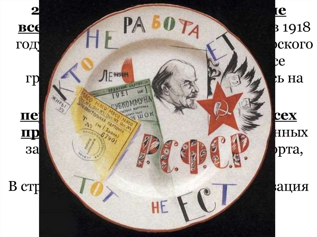 Национализация промышленности8 декабря 1917 – принятие