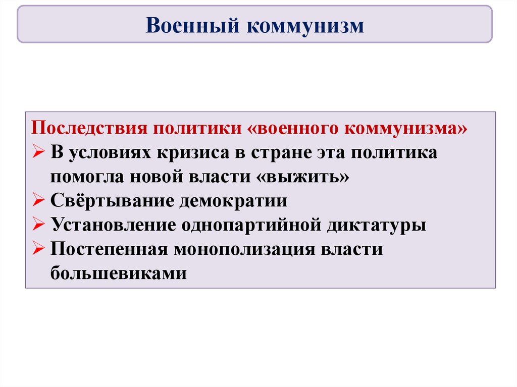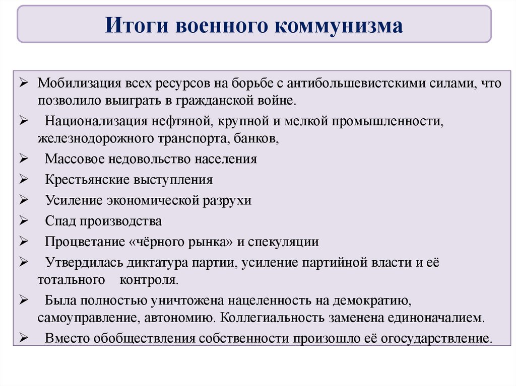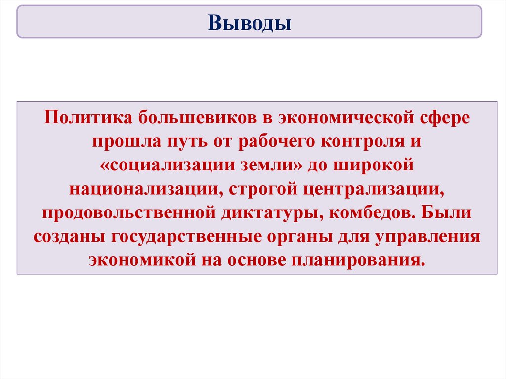 ВыводыПолитика большевиков в экономической сфере