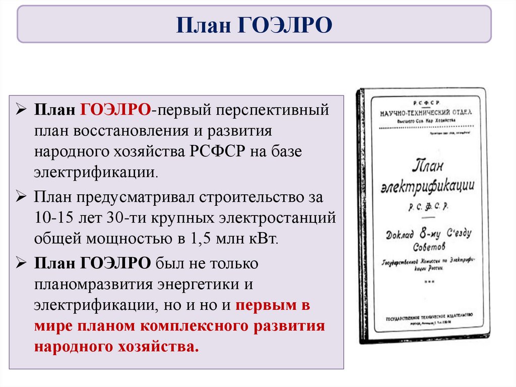 территорий. План ГОЭЛРО,