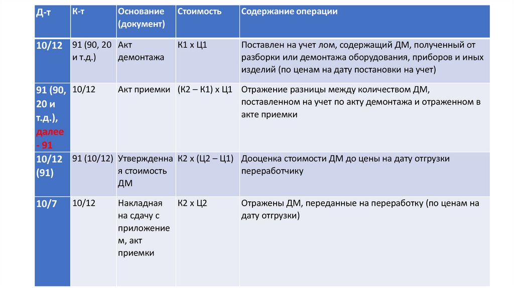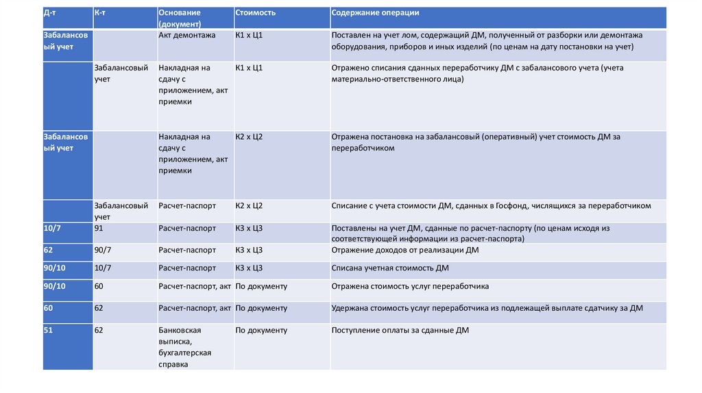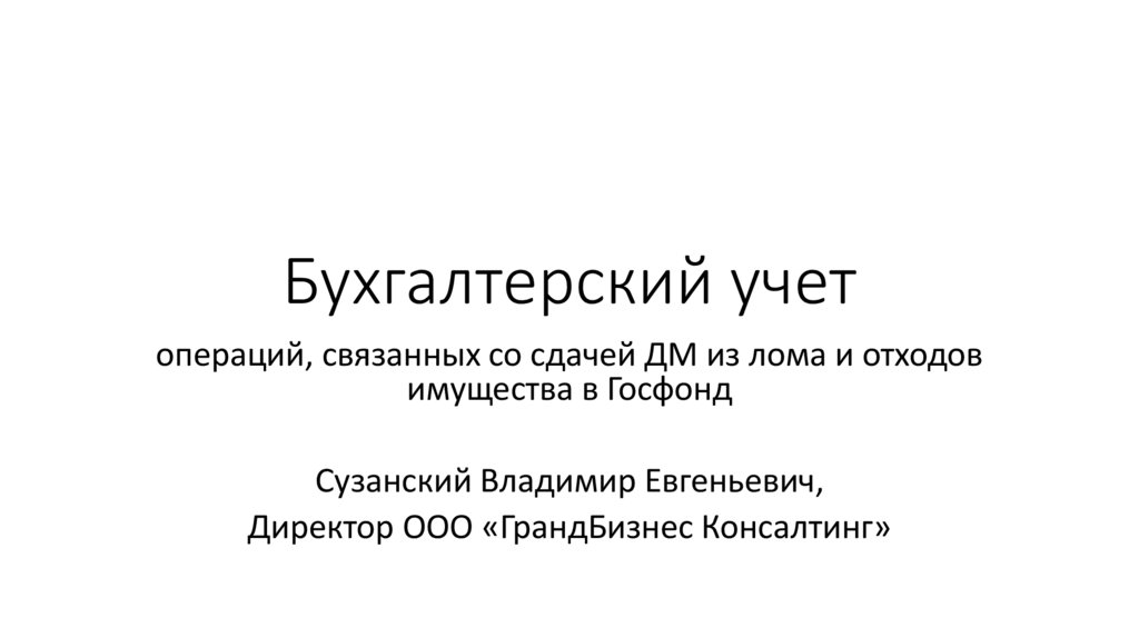 операций, связанных со сдачей ДМ из лома и отходовимущества в Госфонд