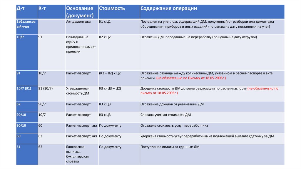 Дооценка стоимости ДМ до цены реализации по расчет-паспорту (не обязательно по