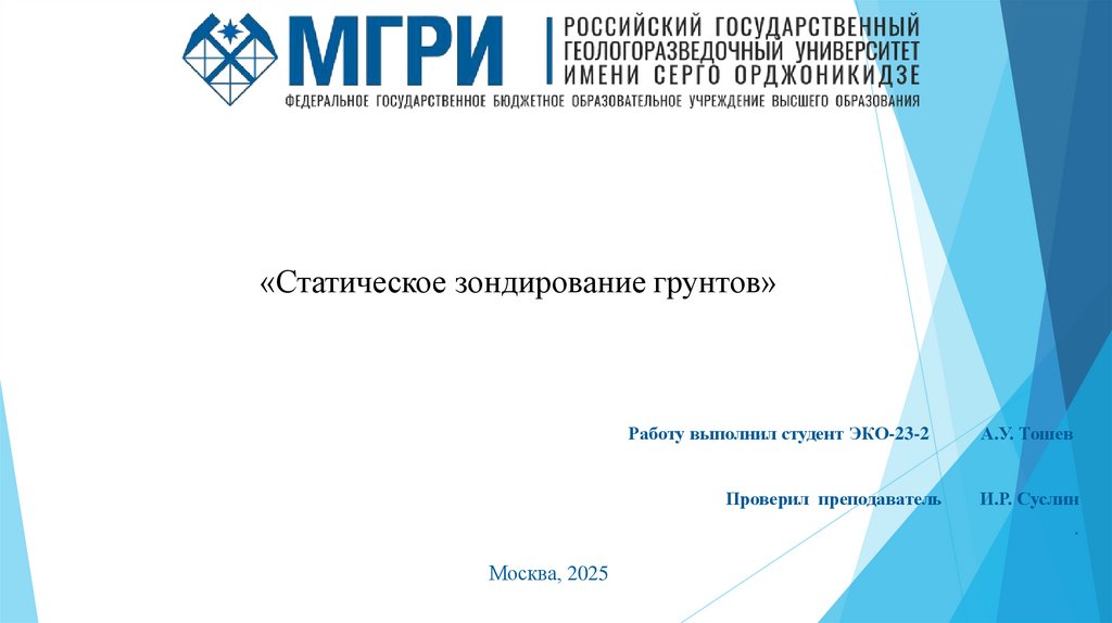 «Статическое зондирование грунтов»Работу выполнил студент ЭКО-23-2