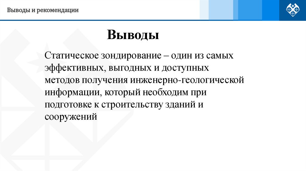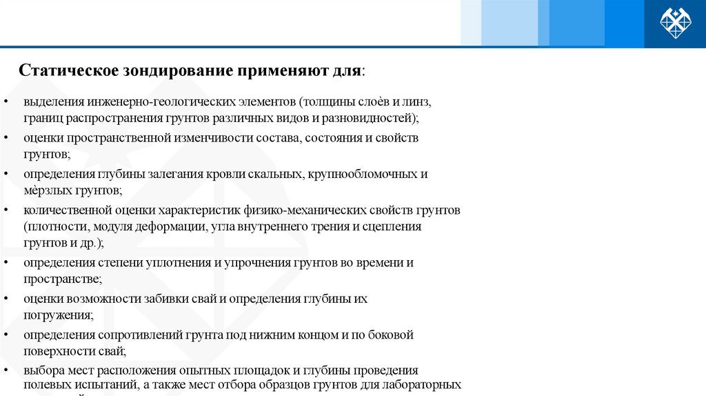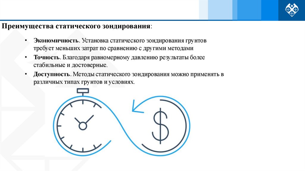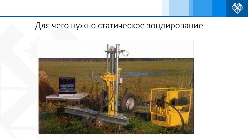 Преимущества статического зондирования:• Экономичность. Установка статического зондирования грунтов