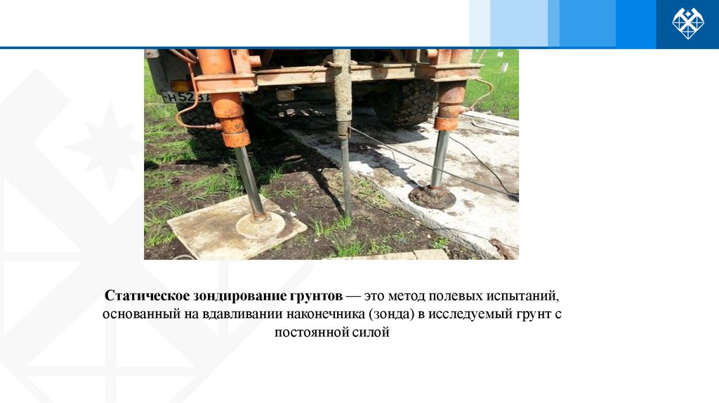 Статическое зондирование грунтов — это метод полевых испытаний,основанный на вдавливании наконечника (зонда) в исследуемый грунт с