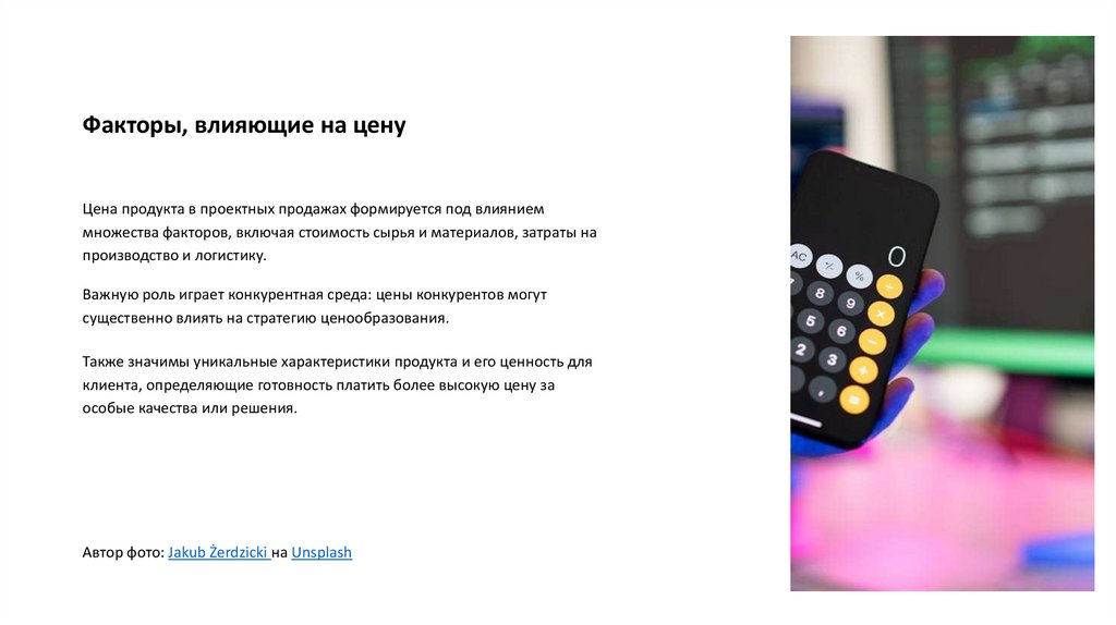 Факторы, влияющие на ценуЦена продукта в проектных продажах формируется под влиянием