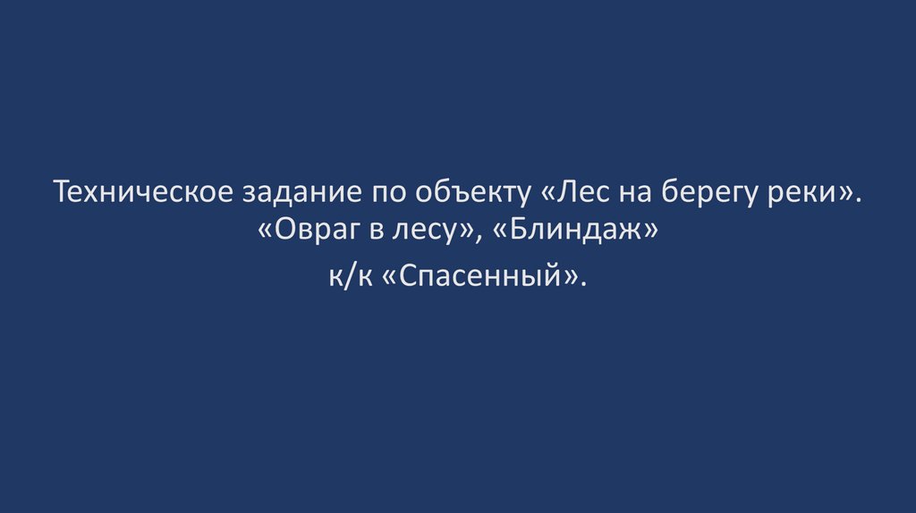 Техническое задание по объекту «Лес на берегу реки».«Овраг в лесу», «Блиндаж»