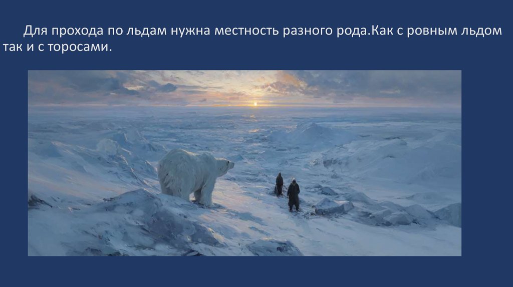 Для прохода по льдам нужна местность разного рода.Как с ровным льдомтак и с торосами.
