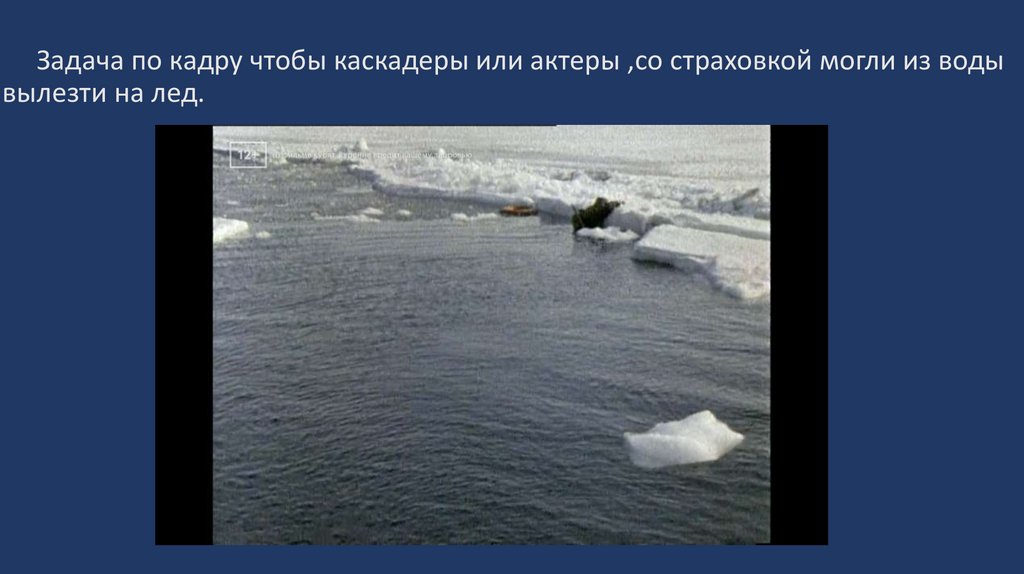 Задача по кадру чтобы каскадеры или актеры ,со страховкой могли из водывылезти на лед.