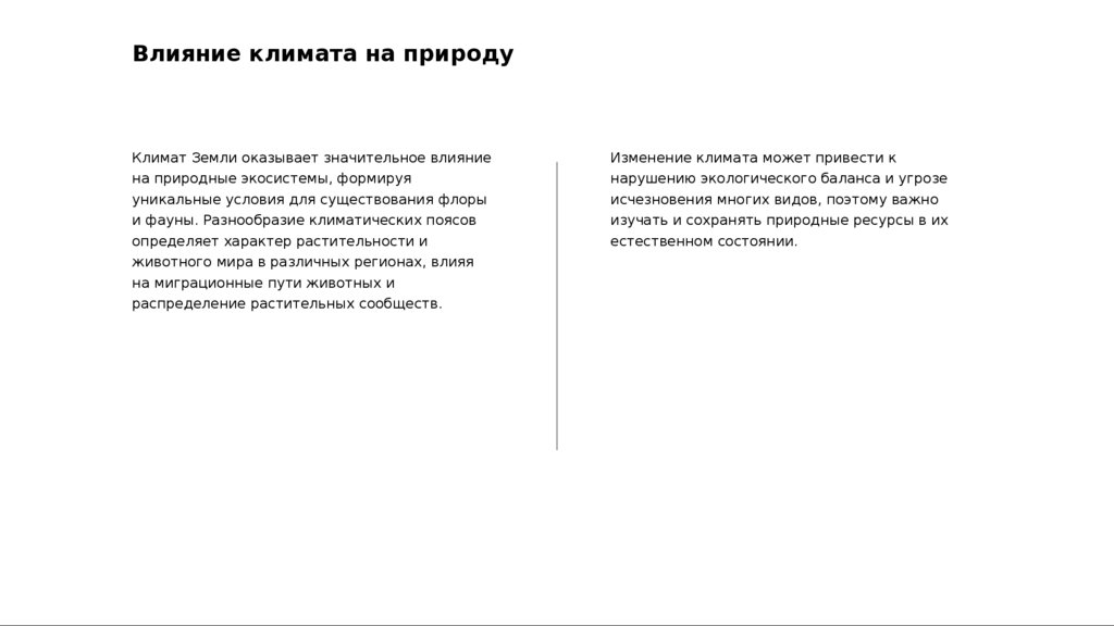 Влияние климата на природуКлимат Земли оказывает значительное влияние