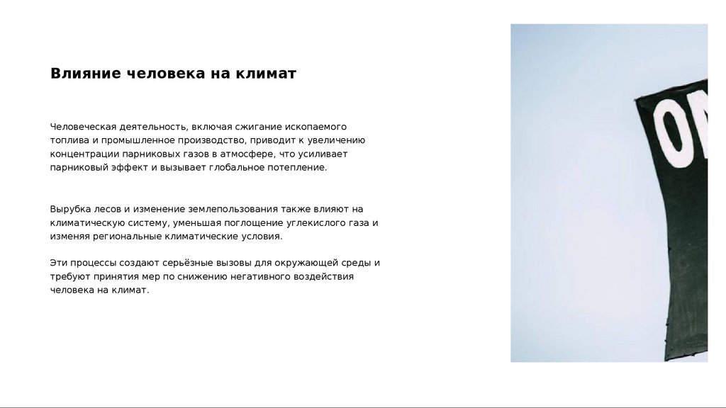 погодных явлениях, воздействии человека на климат и