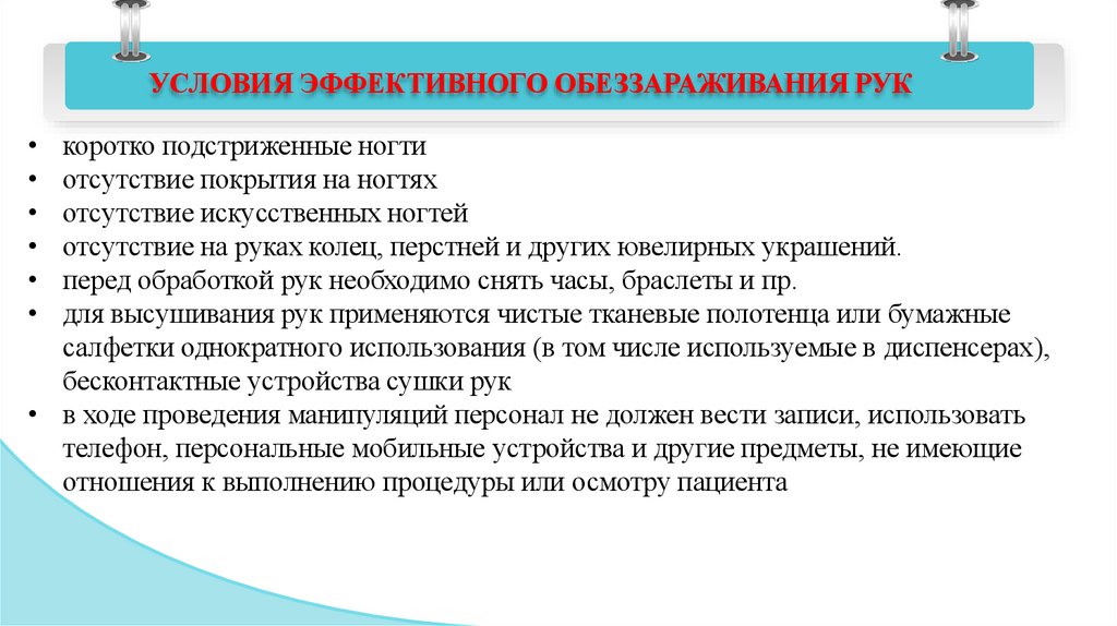 УСЛОВИЯ ЭФФЕКТИВНОГО ОБЕЗЗАРАЖИВАНИЯ РУКкоротко подстриженные ногти