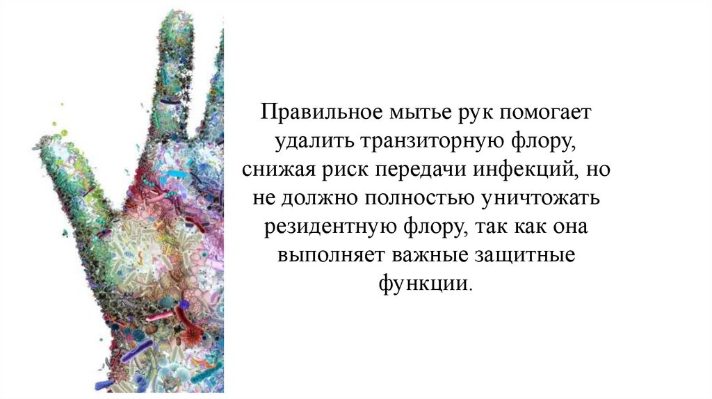 Правильное мытье рук помогаетудалить транзиторную флору,