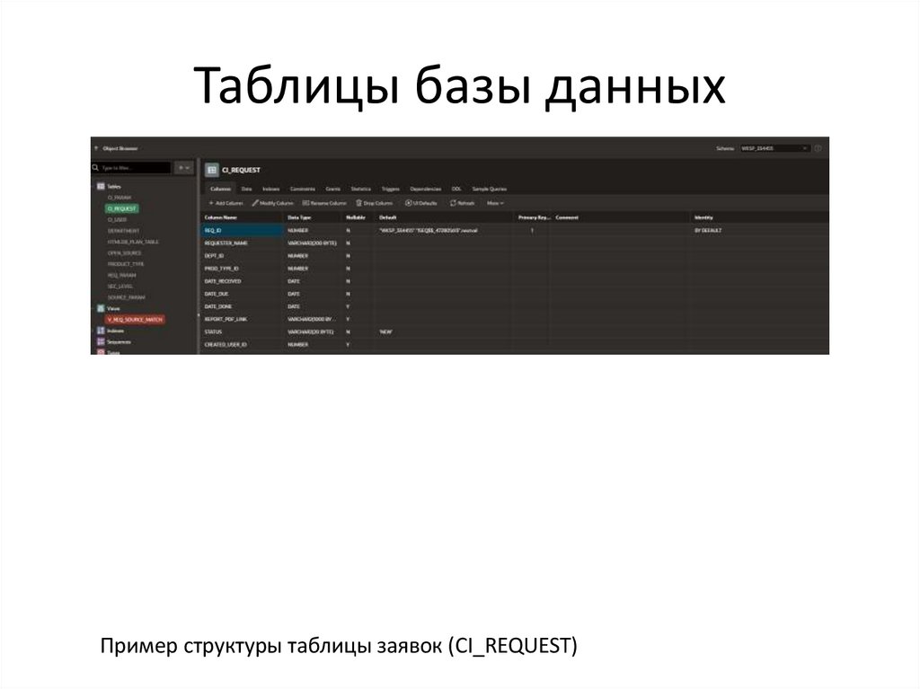 Таблицы базы данныхПример структуры таблицы заявок (CI_REQUEST)