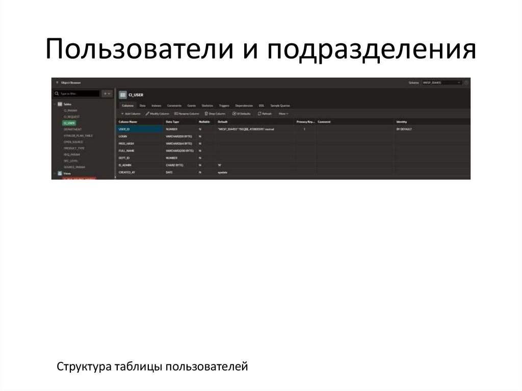 Пользователи и подразделенияСтруктура таблицы пользователей
