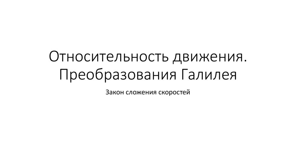 Закон сложения скоростей2. ИСО и первый закон Ньютона