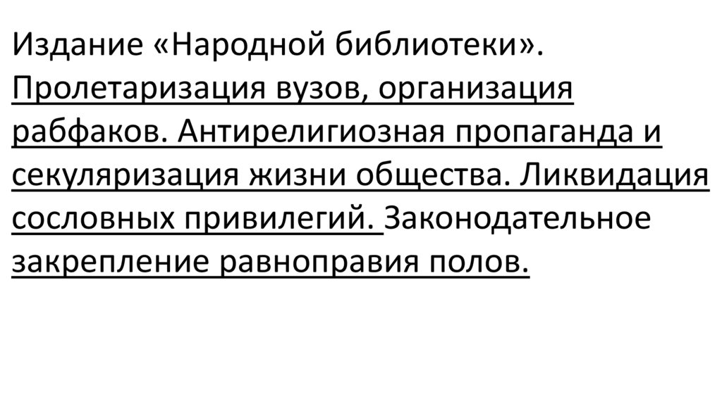 Издание «Народной библиотеки».Пролетаризация вузов, организация