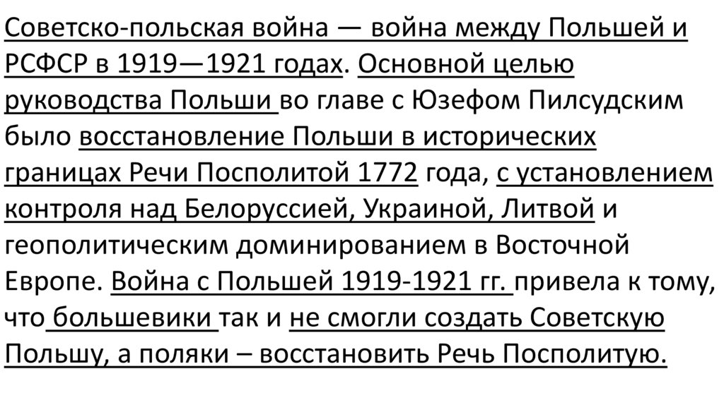 Советско-польская война — война между Польшей иРСФСР в 1919—1921 годах. Основной целью