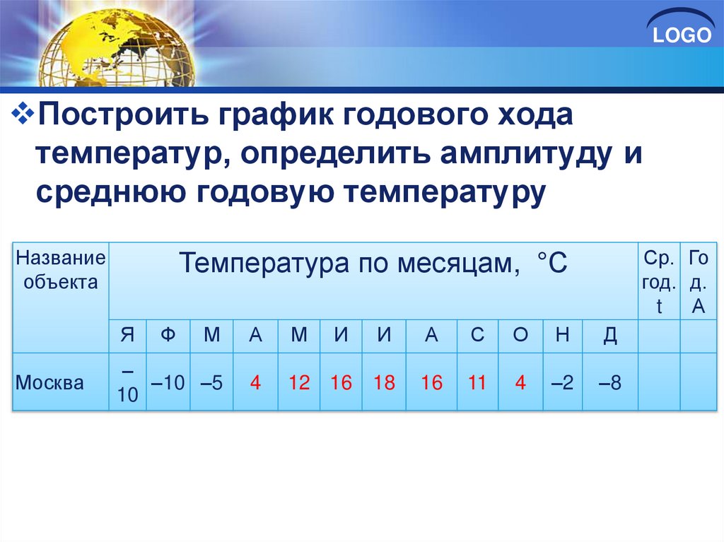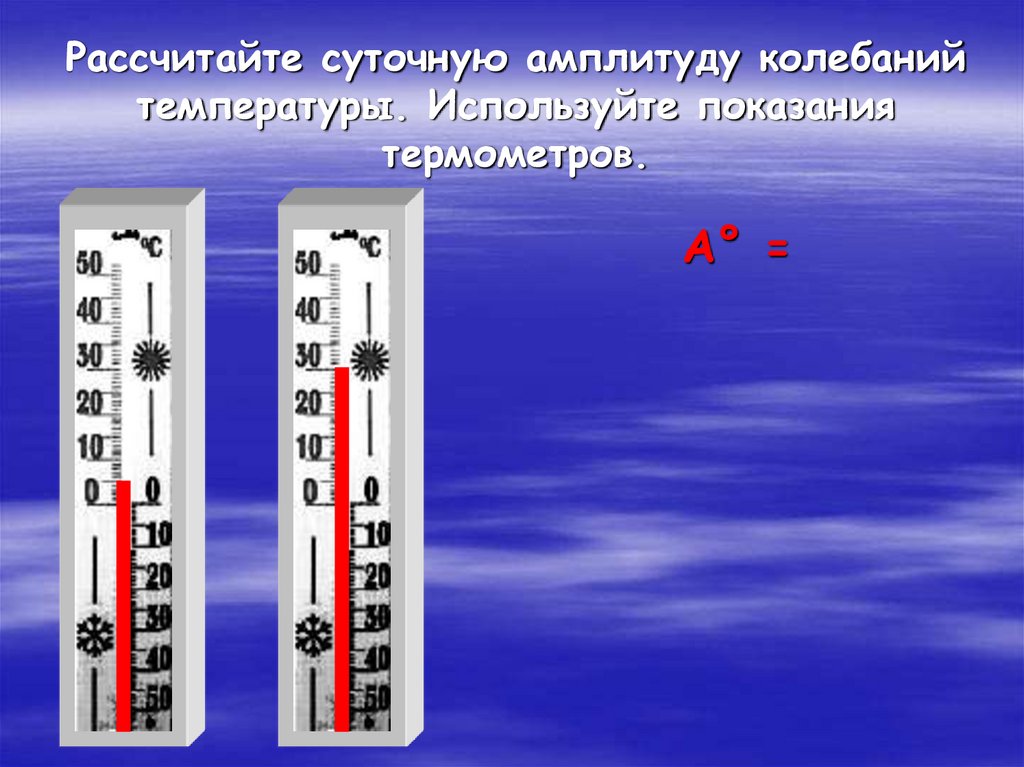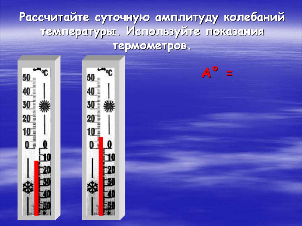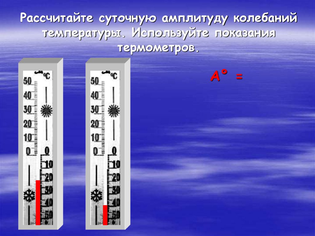 Рассчитайте суточную амплитуду колебанийтемпературы. Используйте показания