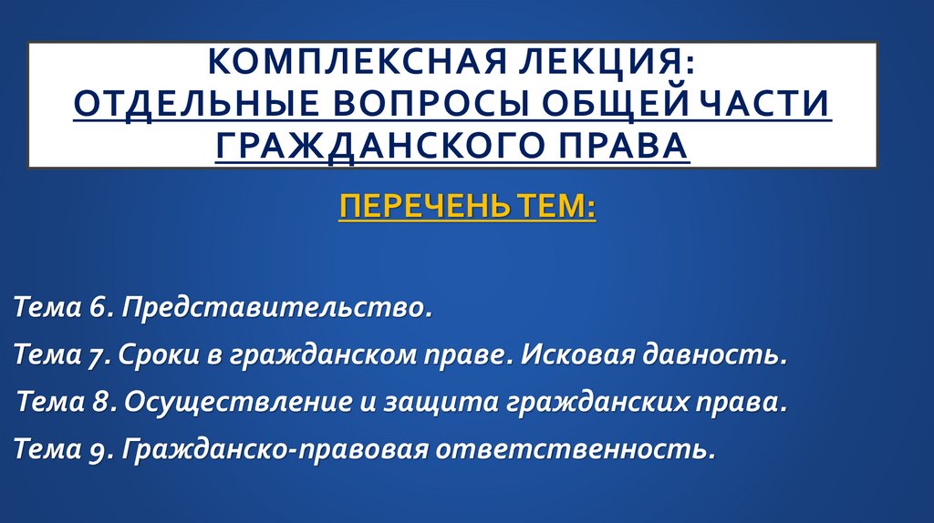 1. Комплексная лекция: ОТДЕЛЬНЫЕ ВОПРОСЫ ОБЩЕЙ ЧАСТИ ГРАЖДАНСКОГО ПРАВА