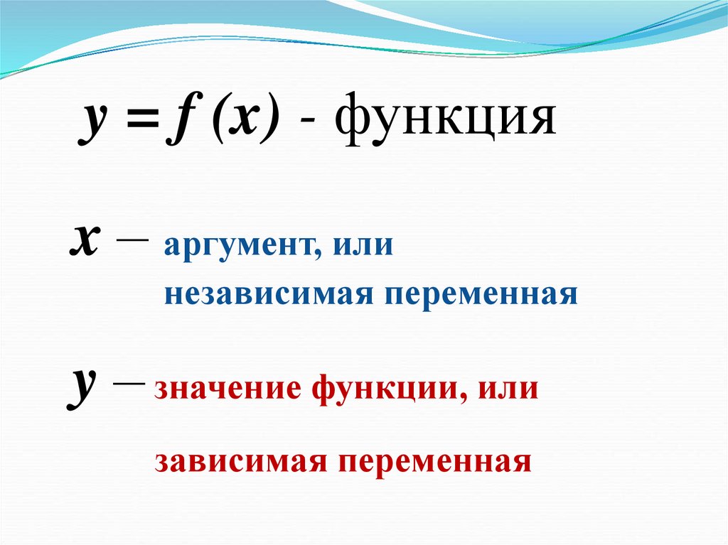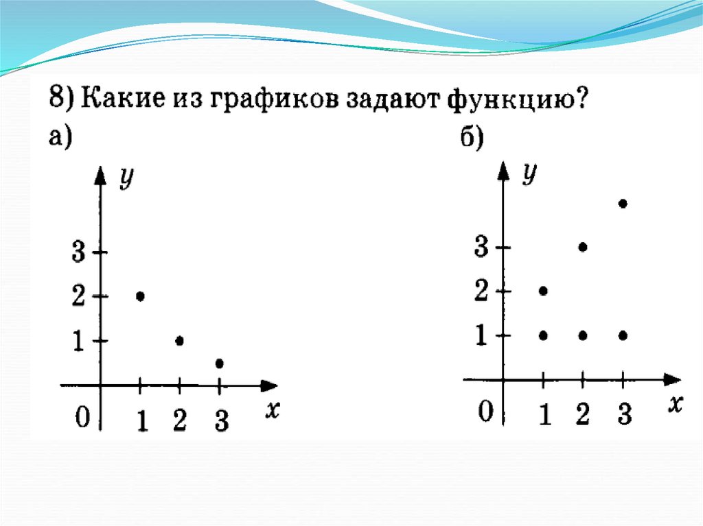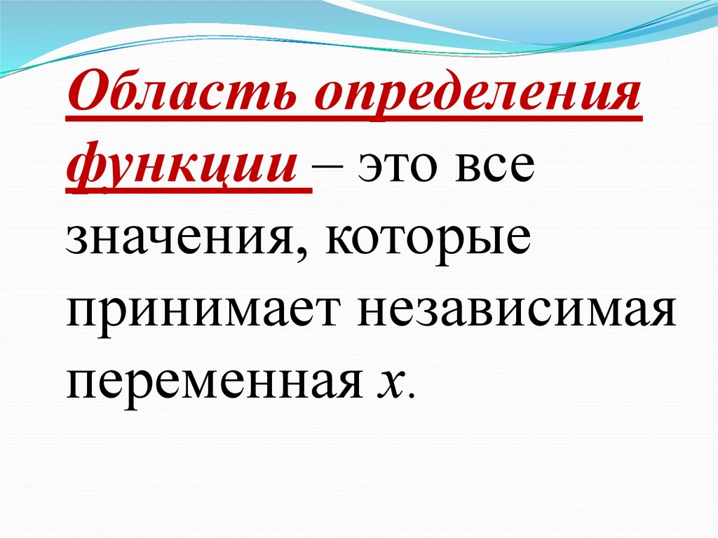 7. Функция – это зависимость переменной у от переменной х, причем каждому значению х соответствует только одно значение у.